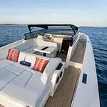 Her twin inboard engines deliver around 870 horsepower, pushing her close to 40 knots. Quick, stable and always smooth, she is ideal for fast crossings to Formentera or a relaxed cruise along the Ibiza coast.
