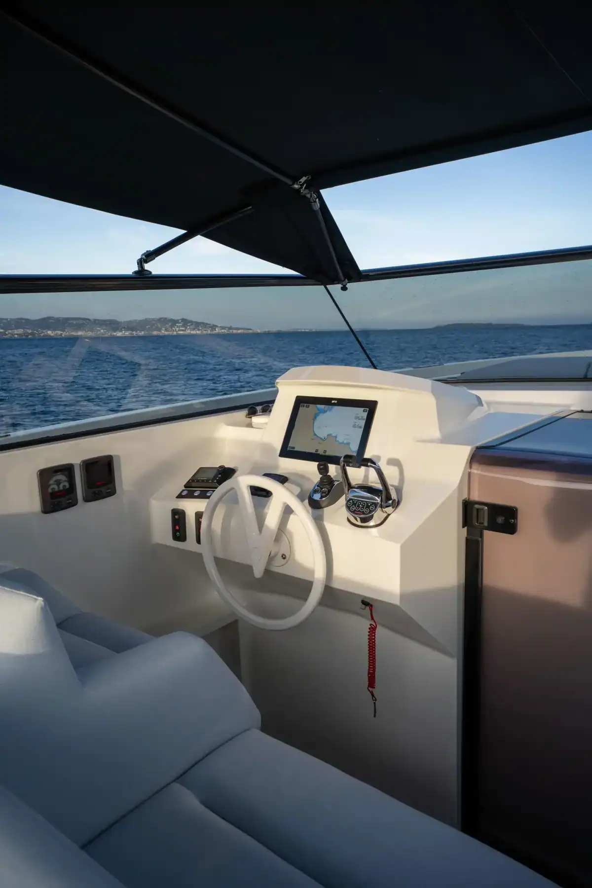 Her twin inboard engines deliver around 870 horsepower, pushing her close to 40 knots. Quick, stable and always smooth, she is ideal for fast crossings to Formentera or a relaxed cruise along the Ibiza coast.
